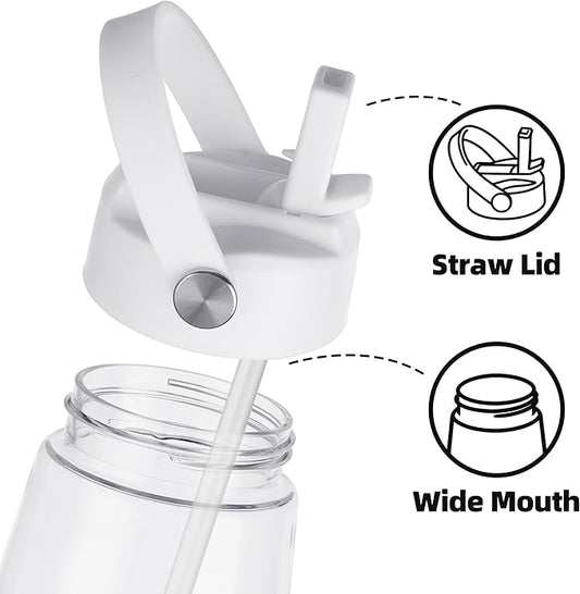 TKK Sports Water Bottles with Removable Straw 29 oz Leak-proof Flip Top Lid BPA Free Tritan Bottles with Strap for School, Fitness, Gym, Outdoor, White