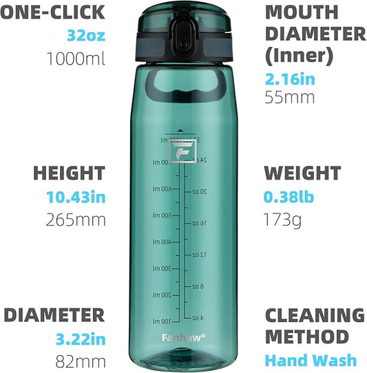 Fanhaw 32 oz Tritan Water Bottle with Chug Lid - Clear, BPA-Free, Lightweight, Wide Mouth, Leak-Proof, Perfect for Gym, Travel, School, Office, and Sports (Dark Green)
