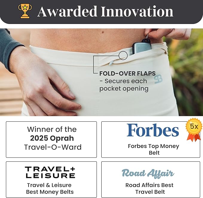 - Slim profile - comfort design - no bulky buckles. Form-fitting, wide slim belt feels soft and flexible, more like clothing, not gear. Easy, pull-on design, like pants, worn discreetly on the waist and hips under or over clothes for workouts, world travel & task tackling.