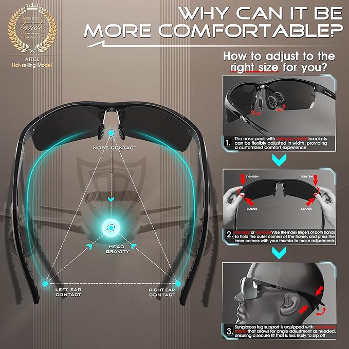 - PREMIUM GIFT PACKAGE: Each pair of ATTCL men’s sunglasses comes with zipper case, microfiber pouch, cleaning cloth, box, and polarization test card. Stylish men’s sunglasses polarized make perfect gifts for Father, Husband, Son, or Boyfriend. These versatile sunglasses men suit driving, fishing, and everyday adventures