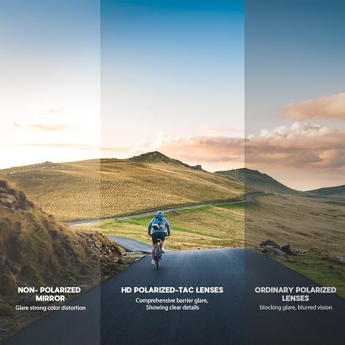 - Durable TAC Material: High-quality, shatterproof TAC lenses for long-lasting wear; lightweight TR90 frame; ideal for motorcycling, cycling, driving, running, fishing, racing, climbing, trekking, and outdoor activities; scratch-resistant and unbreakable; suitable for men and women