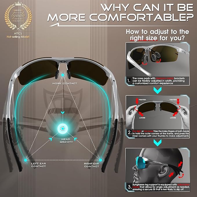 - PREMIUM GIFT PACKAGE: Each pair of ATTCL men’s sunglasses comes with zipper case, microfiber pouch, cleaning cloth, box, and polarization test card. Stylish men’s sunglasses polarized make perfect gifts for Father, Husband, Son, or Boyfriend. These versatile sunglasses men suit driving, fishing, and everyday adventures