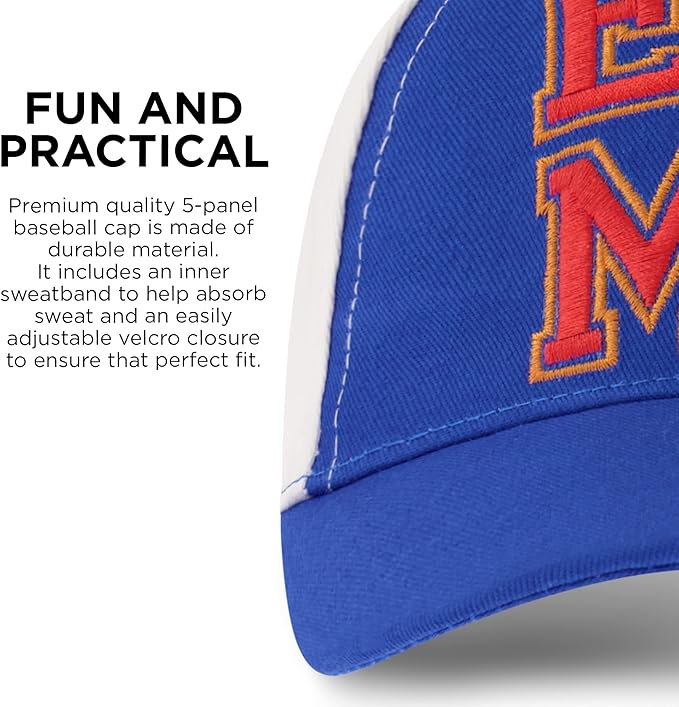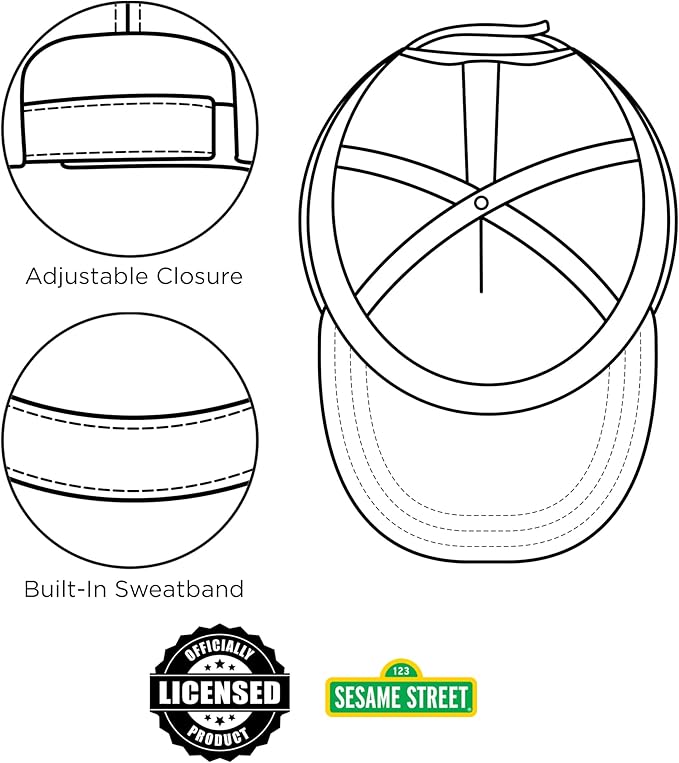 - PREMIUM QUALITY: Made with durable and comfortable Cotton twill. These Boys Baseball Caps Feature a curved brim, colorful Elmo character imagery, inside Sweatband and adjustable closure for a perfect fit so it will stay on his head.