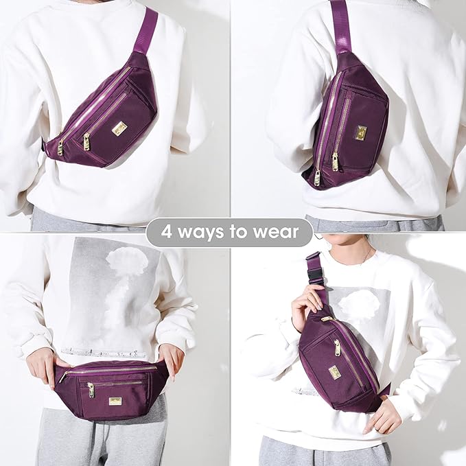 - 【STRONG ADJUSTABLE NYLON BELT】: The belt of the waist bag is adjustable, The waist belt adjusts to fit waists with Sizes ranging from 35 to 50 inches. Adjustable Length There are many ways to wear this fanny pack - (1)As a Waist Bag:Wear it in front of your waist (2)As a Hip Pack:Back on your hip (3)As a Sling Fanny Pack or a Shoulder Fanny Pack:Slant across your chest or over You shoulder.Perfect for various occasions.