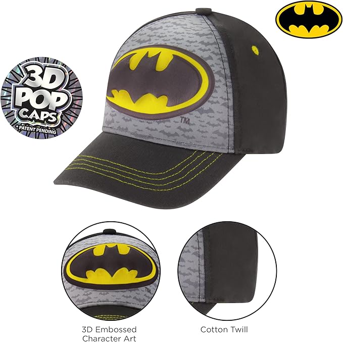 - STYLISH DESIGNS: These Adorable Little Boys Baseball Hats featuring Batman from DC Comics is the perfect Hat that your Boy will be proud to wear and show off anywhere he goes.