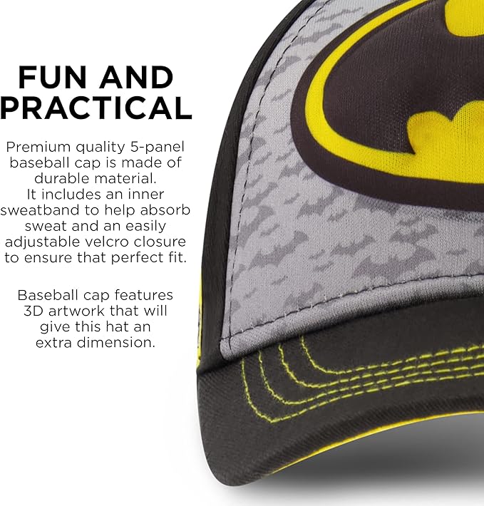 - FUN AND PRACTICAL: He will be ready for all his activities day or night with this fun and stylish Baseball Cap. This Hat Makes a great Gift for young Batman fans and is sure to be his favorite accessory in no time.