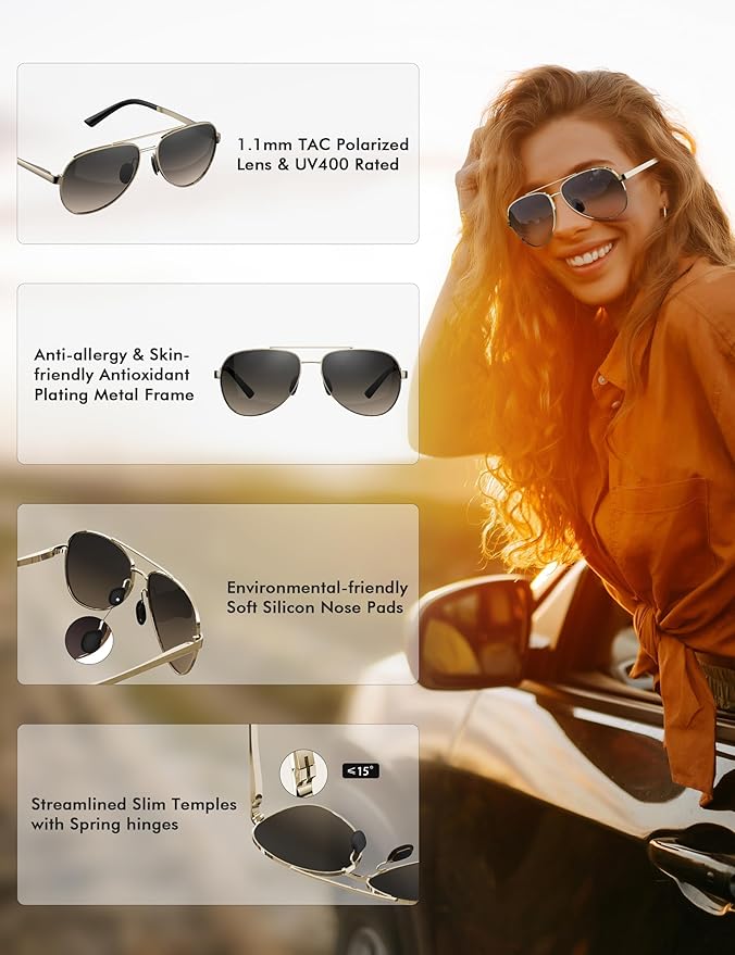 LUENX Aviator Sunglasses for Men Women Polarized - UV400 Protection, Stylish Shades, Driving, Outdoor Activities