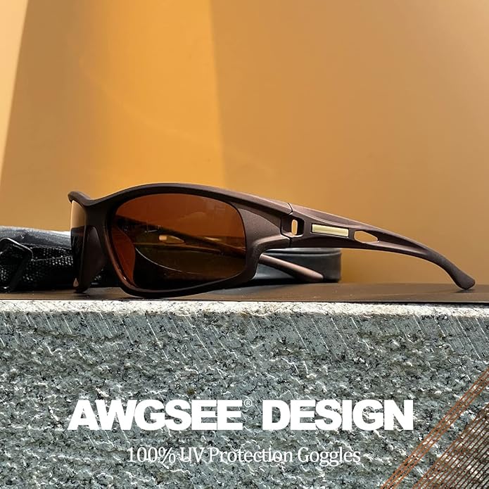 - TAC POLARIZED LENS ► These AWGSEE Sunglasses lens offering 100% UV Protection, will reduce glare, eliminate reflected light and scattered light. Helps to ease eye strain from long hours in the sun, increase visual clarity, contrast, making them an excellent choice for general outdoor , driving, fishing and water sports activities.