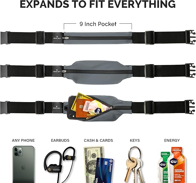 Back Bay Slim Running Belt for Women & Men [Fits ALL Phones], Runners Fanny Pack for Men, Money Belt, Running Gear Gift, Waist Bag Workout Gear, iPhone Runner's Phone Holder Waist Pack