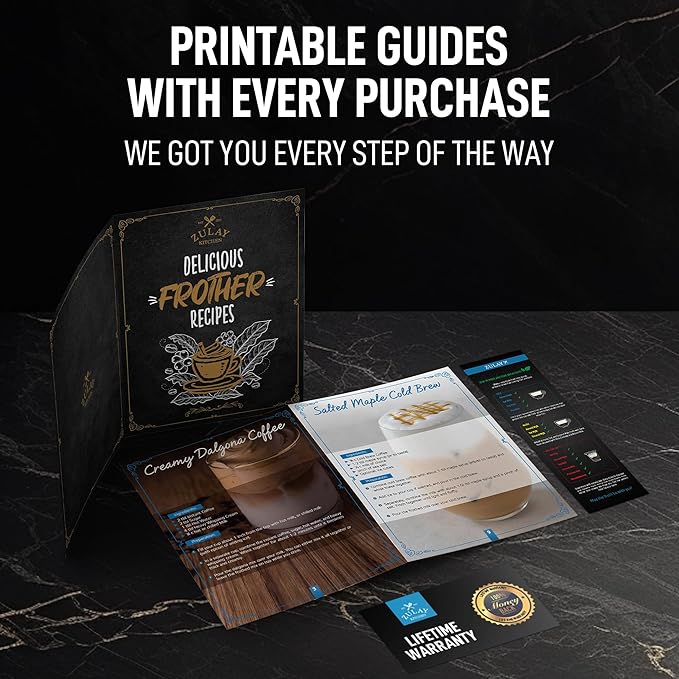 - MAKE RICH, CREAMY FROTH IN SECONDS: This electric milk frother has got your back when you're in a rush and still need a perfect coffee. It is built with a 13,000 RPM moton and 25 spiral rings to add that velvety richness to your drink in seconds. Save a trip to a coffee shop and make the best latte, cappuccino, macchiato, hot chocolate, or matcha at home with this milk foamer.