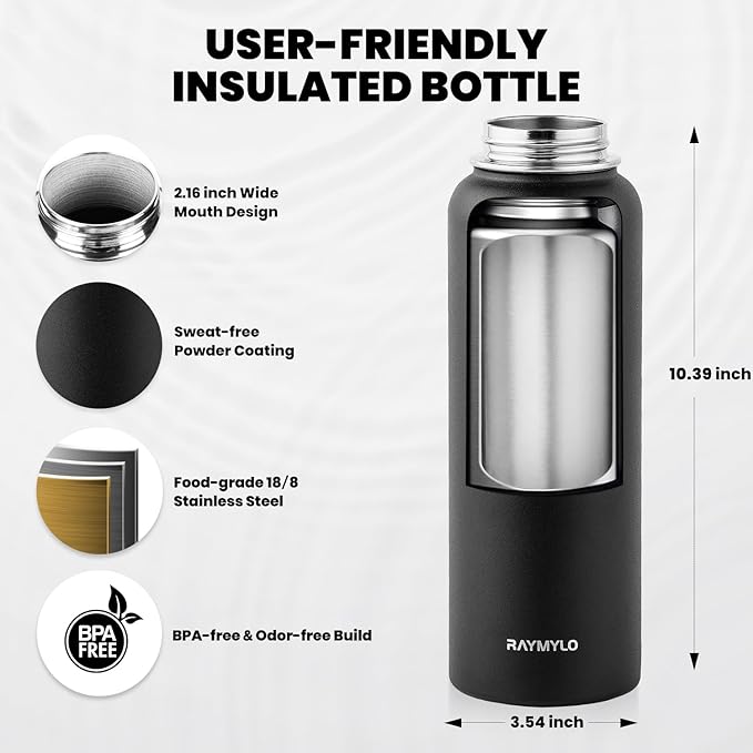 - Triple Wall Insulation: Raymylo 40 oz Modern Insulated Water Bottle featuring copper plated triple wall vacuum insulation, is tested to keep your drinks icy cold for up to 48 hrs and reassuring warm 24 hrs. Get this iconic water bottle to up your fitness track, you'll fall for hydrating as every sip is absolutely cool