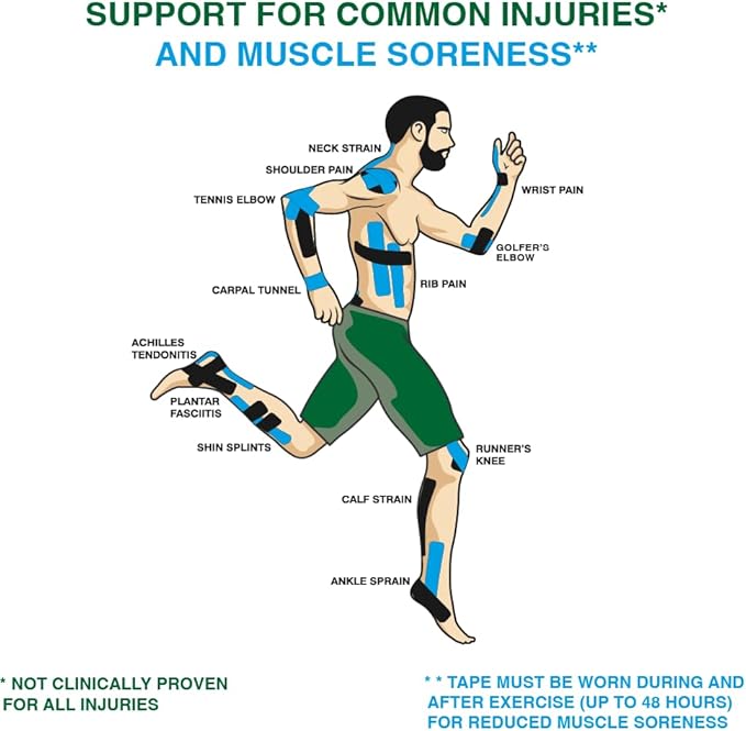 - SUPPORT FOR YOUR PARTS :-) - Apply Thunder Tape, kinesiology tape for back, shoulder, and knee pain relief, plantar fasciitis, tennis elbow, ankle & foot support, and to reduce soft tissue swelling.