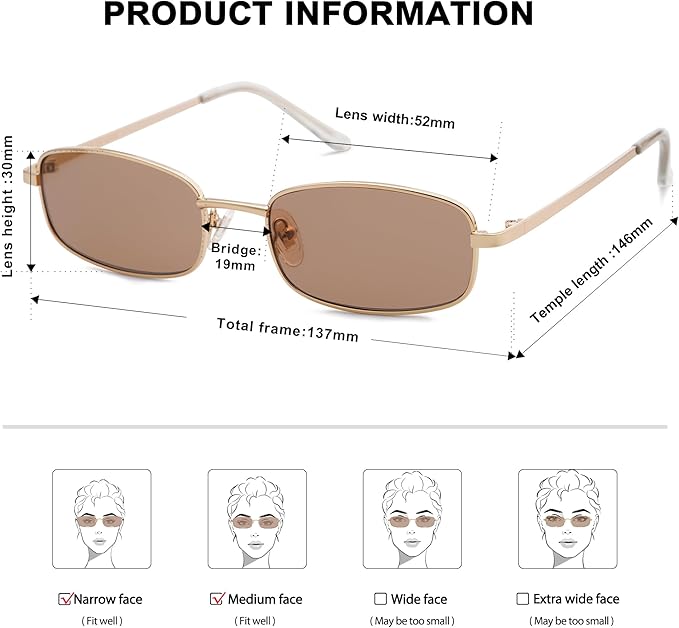 - RETRO SMALL NARROW SKINNY FRAME - These retro trendy rectangle sunglasses are keeping up closely with the latest fashion trend, which can match with various facial shapes.