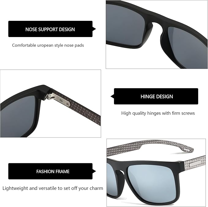 - Luxury Carbon Fiber: The carbon fiber material is unbreakable, flexible, anti-corrosive and skin-friendly. It is stronger than steel and lighter than aluminum. It is a great pair of sunglasses men for sport, fishing, driving and other outdoor occasions