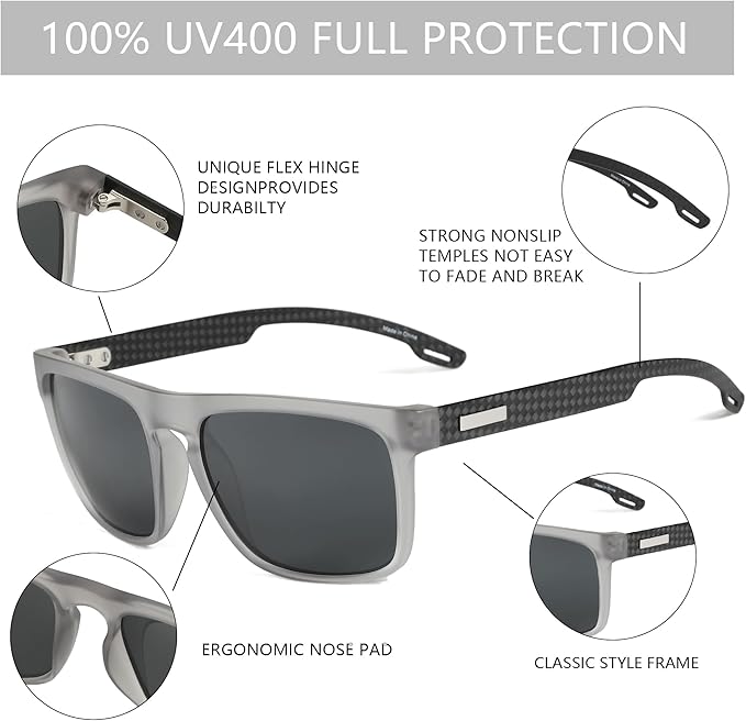 - Luxury Carbon Fiber: The carbon fiber material is unbreakable, flexible, anti-corrosive and skin-friendly. It is stronger than steel and lighter than aluminum. It is a great pair of sunglasses men for sport, fishing, driving and other outdoor occasions