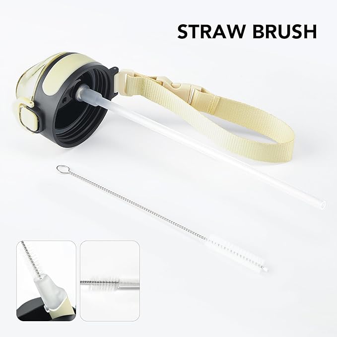 - Humanized Design: The one-hand operation button allows for easy access to water. Highly suitable for boys and girls, and all ages. The flip-top lid of the insulated bottle is used a secure lock, making it dust-free and leak-proof. The included straw brush makes maintaining your bottle's cleanliness uncomplicated and efficient.
