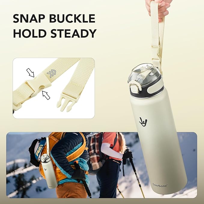 Enerbone 32 oz Insulated Water Bottle, Stainless Steel Bottle with Carrying Strap, Double-Wall Vacuum Insulation Design, Leakproof Sports Bottle with Straw, Keep Drinks Cold or Hot for Hours