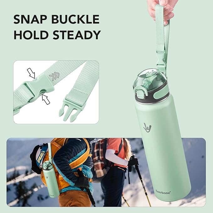 Enerbone 32 oz Insulated Water Bottle, Stainless Steel Bottle with Carrying Strap, Double-Wall Vacuum Insulation Design, Leakproof Sports Bottle with Straw, Keep Drinks Cold or Hot for Hours