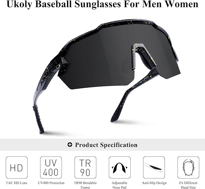 - 1.[Ukoly Trendy Sports Sunglasses Specially Designed For Men Women Youth] Product Type:Baseball Sunglasses,Running Sunglasses,baseball glasses,cycling glasses,sunglasses womens,sunglasses men,sunglasses,womens sunglasses,mens sunglasses,sunglasses womens trendy,sports sunglasses,sport glasses.