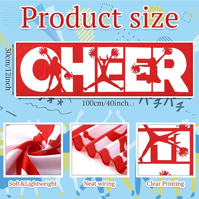 - Generously Sized: our cheerleader towel measures about 40" x 12" which is spacious enough to tie around your neck, drape over your shoulders, or even use as a headband; You don't have to worry about it falling off, it stays put, offering you an effortless and hassle free usage