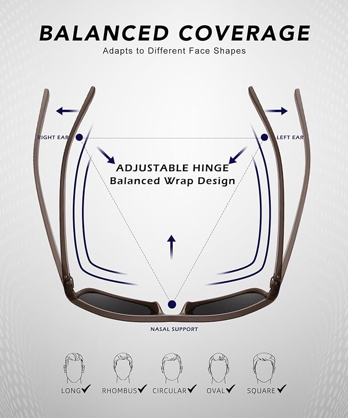 - 😎 High-Quality Materials ▶ Crafted from premium materials, QALLY sunglasses for men are designed to offer superior durability and resistance to high temperatures. The spring hinges allows the mens polarized sunglasses to comfortably conform to various face shapes, ensuring they stay securely in place throughout any activity.