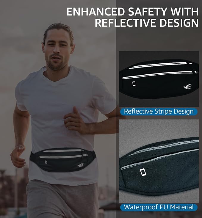 - Reflective Design and Earphone Hole: Safety is paramount, especially during early morning or evening activities. Reflective strips enhance your visibility in low-light conditions, ensuring others can see you. Additionally, the earphone hole design allows you to easily enjoy music, enhancing your exercise experience. Whether it's an upbeat tempo for your morning run or soothing melodies for your night jog, this waist pack makes your workout more enjoyable.