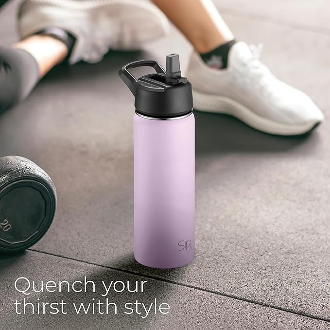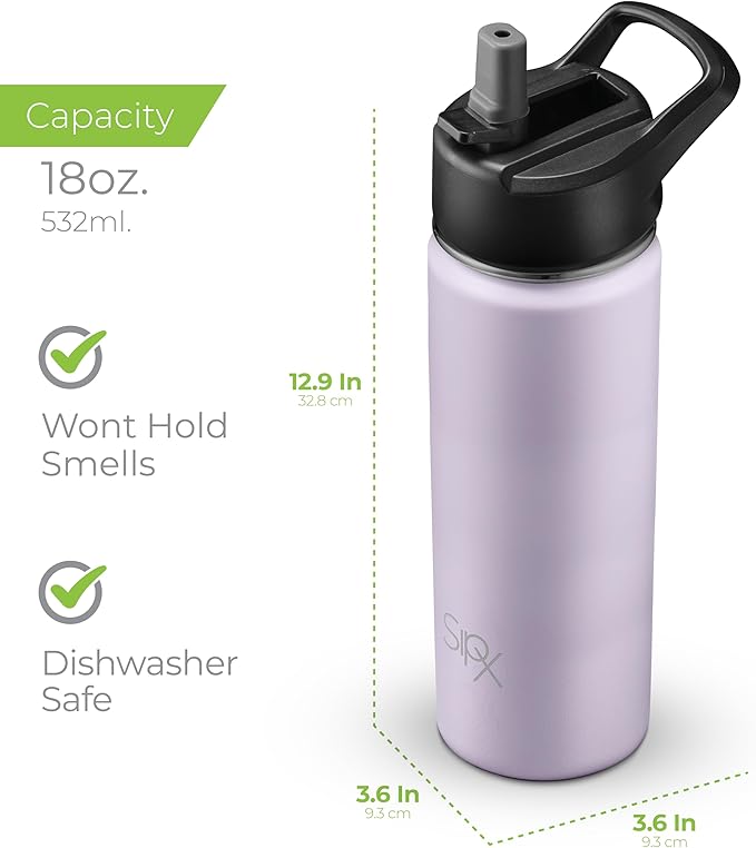 SipX™ 18 oz Insulated Water Bottle with 3 Lids – Leakproof Stainless Steel, Triple Insulated – Cold 24 Hours/Hot 12 Hours – Durable Bottle for School, Gym, Travel – Purple
