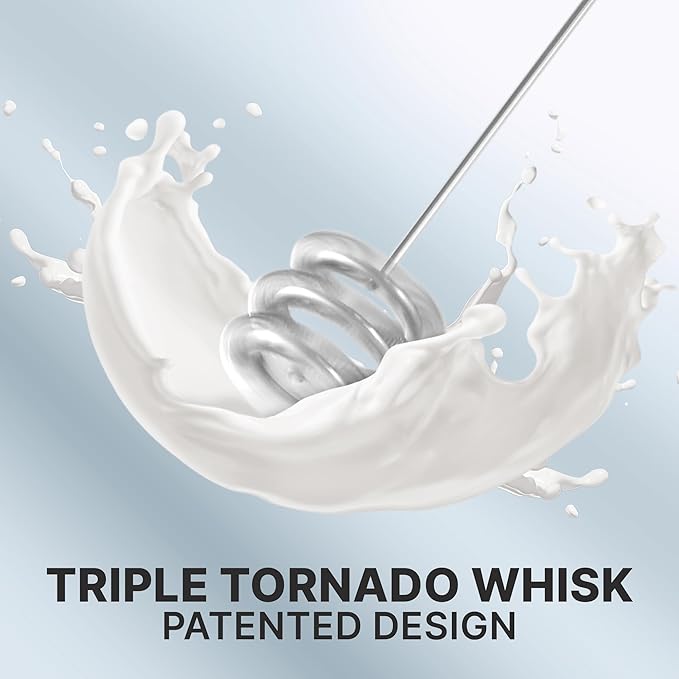 Zulay Kitchen Tornado Milk Frother Handheld Wand – Electric Coffee Frother with Triple Whisk & Stand – Hand Held Drink Mixer for Latte, Cappuccino, Matcha, Hot Chocolate, Protein Shakes – Metal Black
