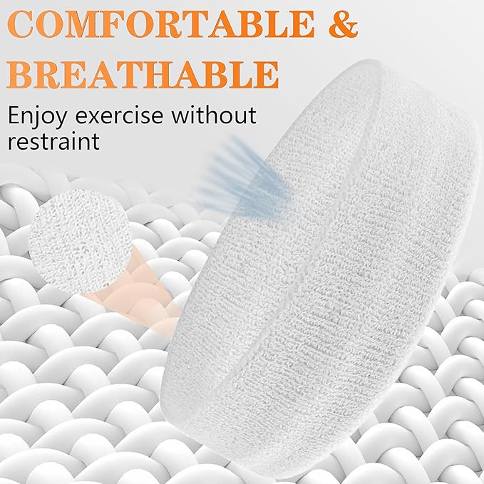 - 💪[Package & After-sales Service] The package contains 4 pieces headbands for women and men. One size fits most. These durable and stylish sports sweat-absorbent head bands athletic sweatbands can meet your daily needs and they look great paired with your favorite sportswear. If you have any questions about the terry cloth sweatbands set, please feel free to contact us and we will always be online to provide you with a satisfactory solution.