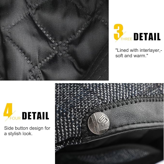 - Mens Newboys Cap: Made of wool, Lined with interlayer, soft and keep you warm in the winter. Durable and comfortable, this newsboy hat is very easy to fix for never fall on the ground easily.