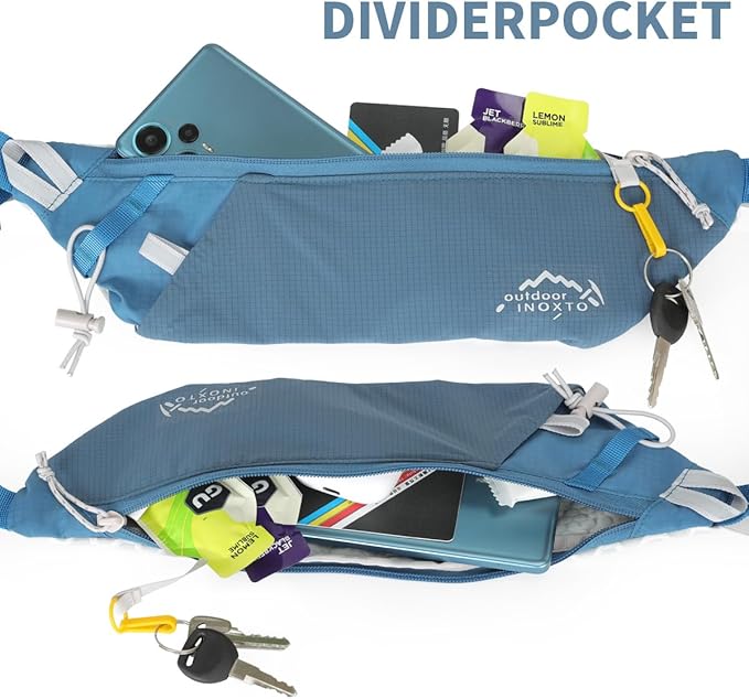 - ❤【Large Main Compartment Capacity】The Inoxto Running Belt Fanny Pack is a lightweight running waist pack that weighs only 200 grams. Its main compartment is designed to be spacious and can store mobile phones, tissues, keys, cash, cards, sports products, etc. This product is suitable for most smartphones with screen sizes below 6.6 inches, ensuring that users can conveniently carry essential items during exercise and enhance their exercise experience. Its lightweight nature makes running.
