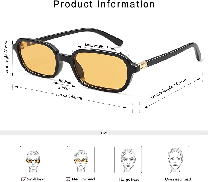 • 【PREMIUM MATERIAL】-Small rectangular sunglasses for women are the prefect glasses for all the super cute fashionistas models bloggers. Slim Design frames are light enough to wear fatigue.The metal pieces on the temple are small and delicate, adding to the grade of 90s rectangular sunglasses.