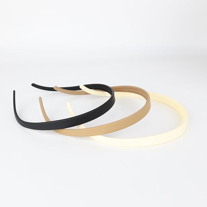 3 Pcs Flex No Pressure Headbands for Women Glasses Wearers - Comfortable Thin Plastic Headbands with Teeth (White, Khaki, Black)