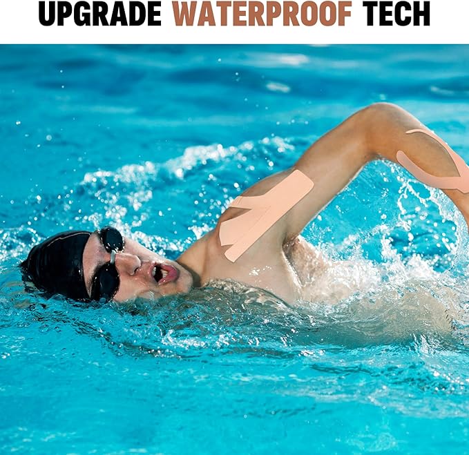 - 【Waterproof Kinetic Tape】We have upgraded the cotton material and adhesive of the kinetic tape, and adopted a unique water ripple design to make our muscle tape water resistant and sweat resistant. They can stick tightly to the skin all the time, even after multiple sweating and showering, the tape remains securely in place