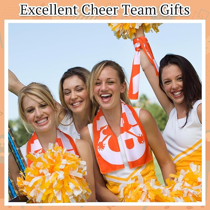 12 Pcs 12/24 Pcs Cheerleader Cooling Towel Cheer Gifts Bulk for Team Cheer Sports Gifts with Bags 40" x 12" Breathable Chilly Microfiber Cooling Towel for Yoga Sport Gym Party Favor (Orange)