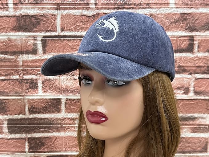 - Unique Design: Do you love fishing? Celebrate your passion for fishing in style with our stylish washed navy blue dad hat, featuring an embroidered Bass Fishing Hook on the front. Perfect for your favorite fisherman or woman! This makes a great gift for fishing enthusiasts, lovers of fishing, Large Mouth Bass Anglers, or any fishing fan, even yourself.