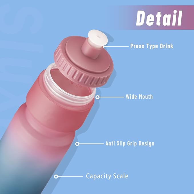 - Comfortable Design: Our Squeeze water bottle features a convenient leakproof pull-top lid which secure and a lot less hassle to open and close. the concave inside of the bottle fits your hand snugly. Squeeze the bottle with one hand to drink water easily and fast, the large water output ensures a 360 watertight experience.