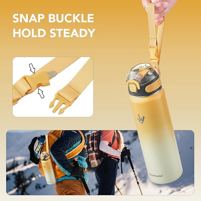 Enerbone 24 oz Insulated Water Bottle, Stainless Steel Bottle with Carrying Strap, Double-Wall Vacuum Insulation Design, Leakproof Sports Bottle with Straw, Keep Drinks Cold or Hot for Hours