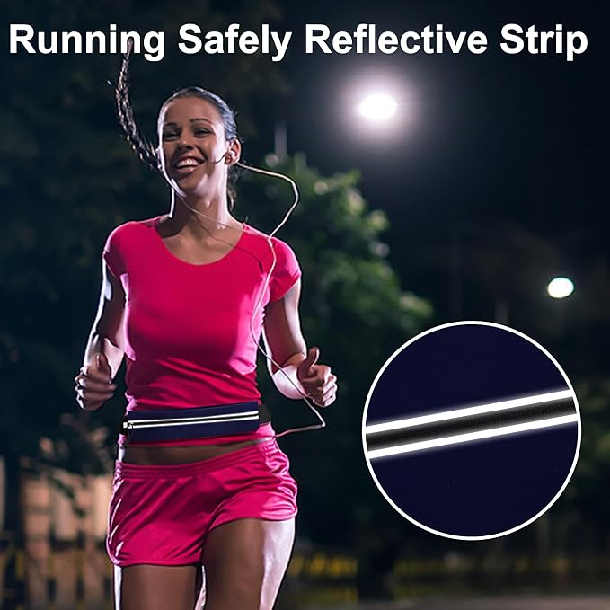Slim Running Belt For Men and Women Waist Fanny Pack Phone Holder Pouch Bag Reflective Zipper Pocket Workout Cycling Fitness