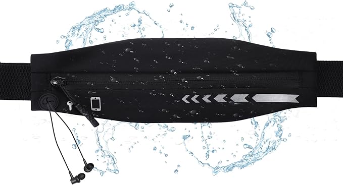 USHAKE Slim Running Belt for Women Men-Runners Phone Holder Fanny Pack, Adjustable, Bounce Free Waist Pouch bag for Workout, Money Belt, Run Gear Accessories Black