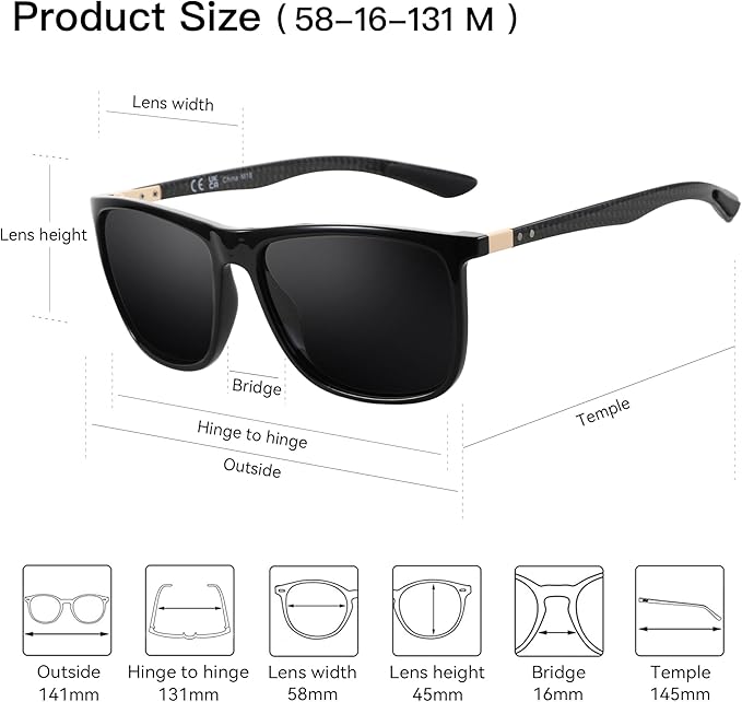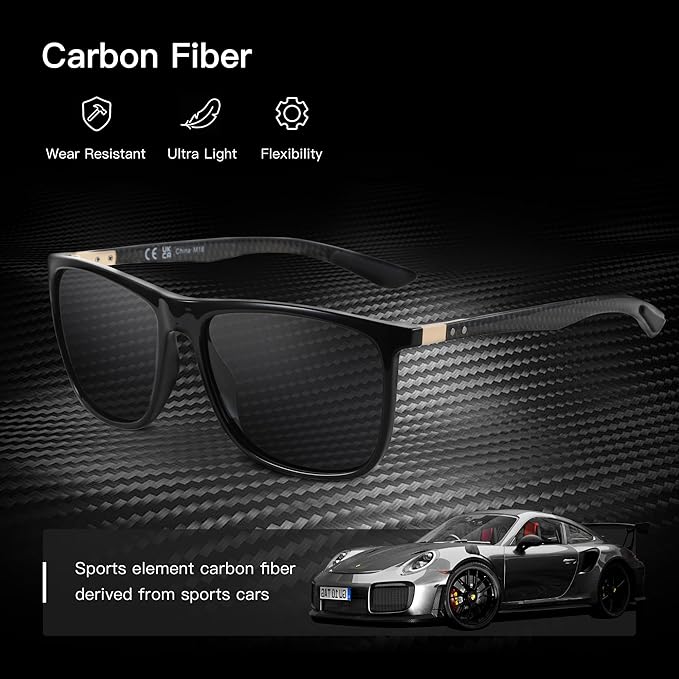 - Luxury Carbon Fiber: The carbon fiber material is ultra-light, flexible, anti-corrosive and skin-friendly. It is stronger than steel and lighter than aluminum. It is a great pair of mens sunglasses for sport, fishing, driving and other outdoor occasions.