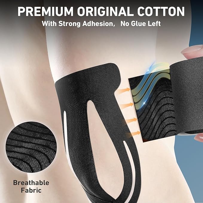 - ✂️Custom Precut for Elbow Precision - Engineered for elbow joints, our 12-count precut kinesiology tape ensures perfect fit and targeted application—ready to use anytime.