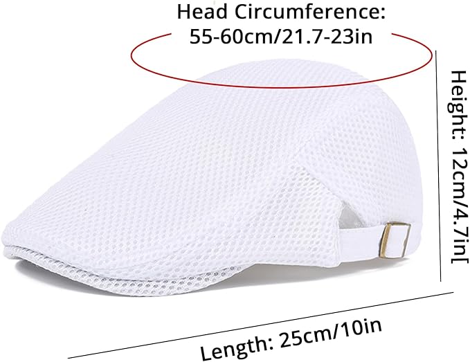 - One adjustable size: Both sides of the newsboy cap for men have rust-proof metal buckles and adjusting straps. Head Circumference: 55-60cm (7 1/8- 7 1/2), 21.7-23.6in