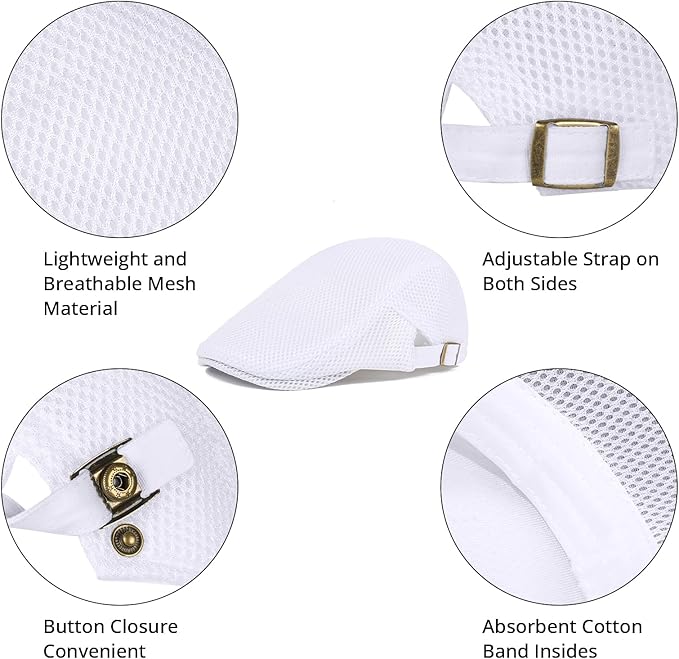 - Mesh material: Men's mesh flat cap are made of 100% cotton fbric, soft skin, non-irritating, breathable and comfortable