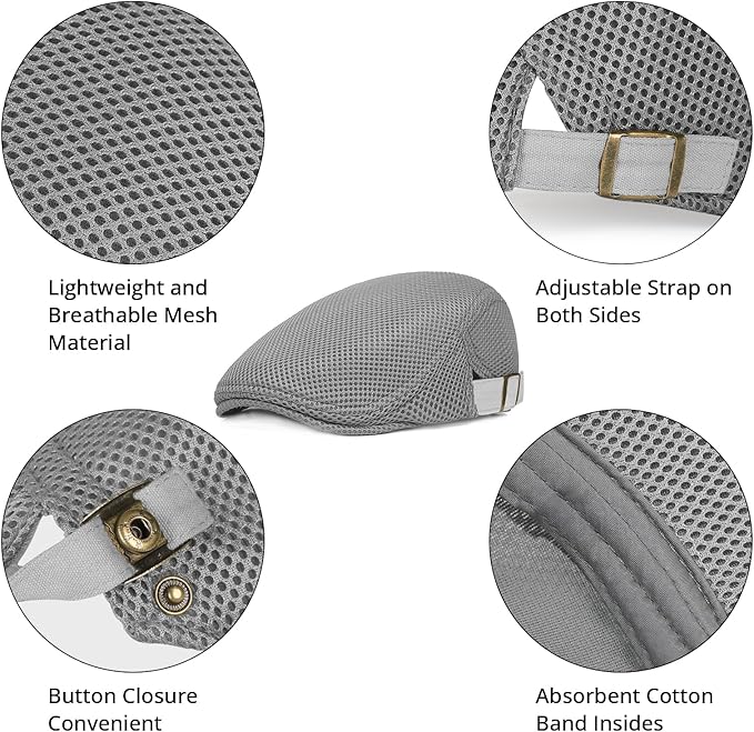 - Mesh material: Men's mesh flat cap are made of 100% cotton fbric, soft skin, non-irritating, breathable and comfortable