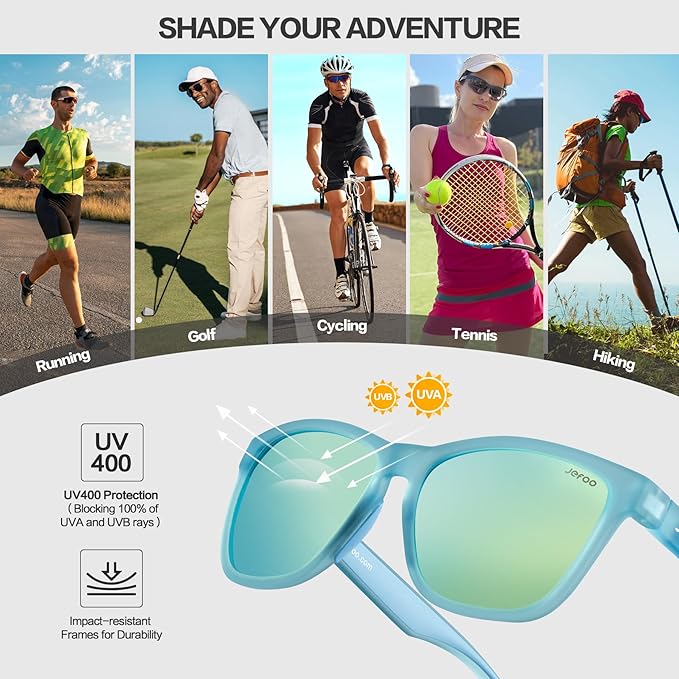 - TAC HD POLARIZED LENSES: Equipped with premium 1mm TAC polarized lenses, Jefoo polarized sunglasses reduce glare and offer high-clarity optical vision for daily activities or vacations in the bright sun of Hawaii
