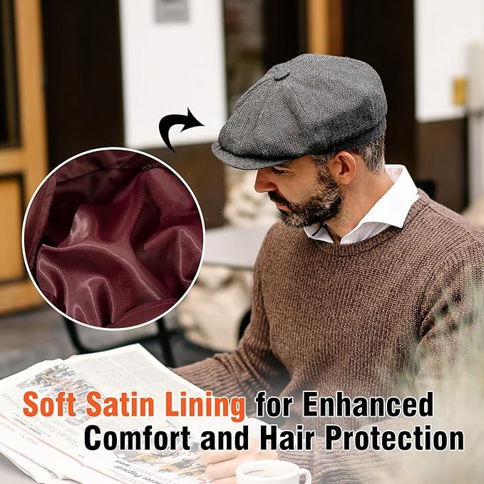 - 【Soft Satin Lining for Enhanced Comfort and Hair Protection】The satin lining of the newsboy hat provides a smooth and luxurious feel, reducing friction to protect your hair from damage and ensuring all-day comfort.