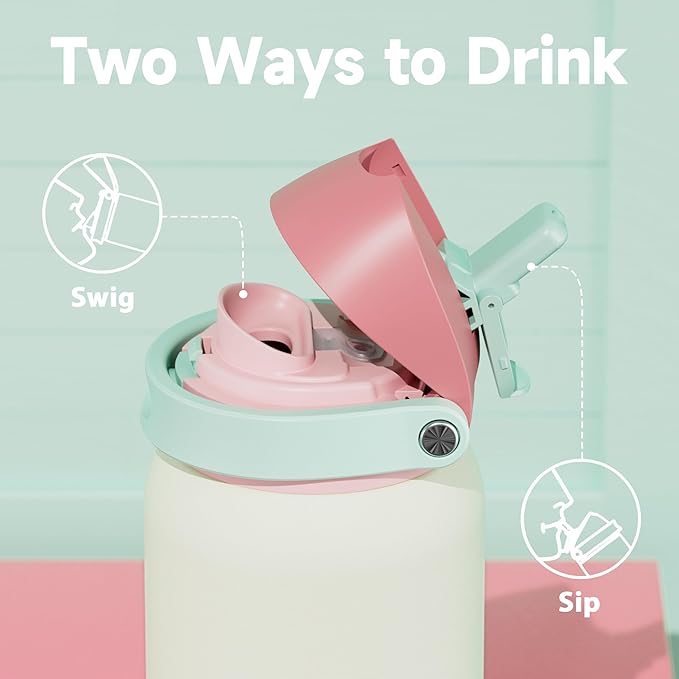 - 2-in-1 Lid, Sip or Swig: Features a flip straw for easy sipping and a push-button spout for quick swigging; stay hydrated your way — at the gym, on the go, and beyond