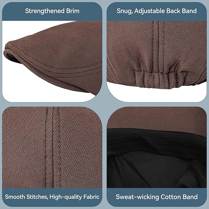- 【Adjustable Fit】: Our men's newsboy cap features an adjustable head circumference fit, assuring not just comfort but also the perfect fit for every man.Hat circumference:S(6 7/8-7 1/8),M(7 1/8-7 3/8,L(7 3/8-7 5/8)