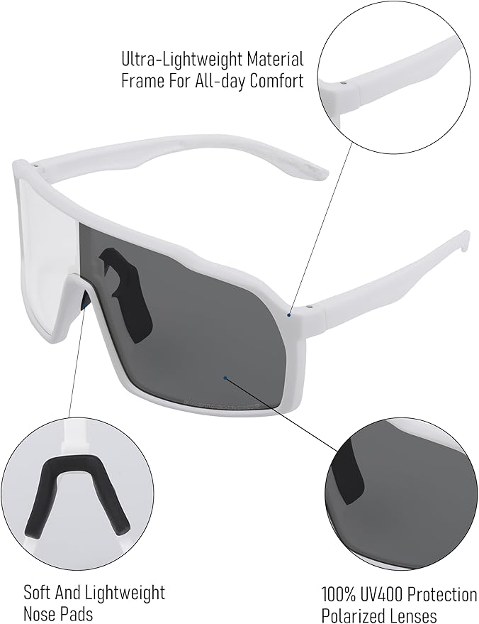 Sports Polarized Sunglasses for Men Women Outdoor Sunglasses UV400 Protection Lens with Nose Pads